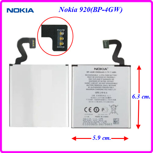 แบตเตอรี่ Nokia 920(BP-4GW) 5.9x6.3 cm.2000 mAh.