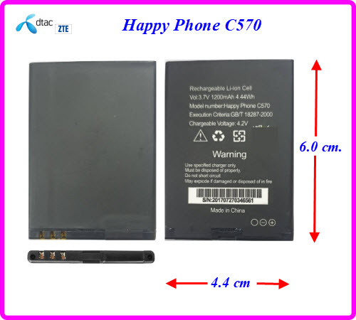 - แบตเตอรี่ ZTE,Happy Phone C570 (BL-4D) 4.4x6.0 1200 mAh.