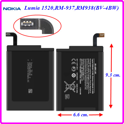 แบตเตอรี่ Nokia Lumia 1520,RM-937,RM938(BV-4BW) 6.6x9.3 cm.3500 mAh.