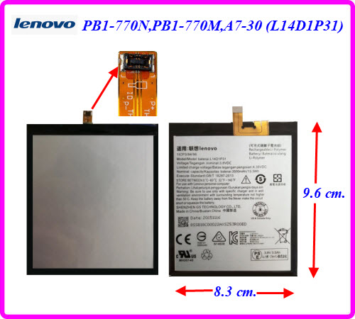 | แบตเตอรี่ Lenovo PB1-770N,PB1-770M,A7-30 (L14D1P31) 8.3x9.6 cm. 3500 mAh. |