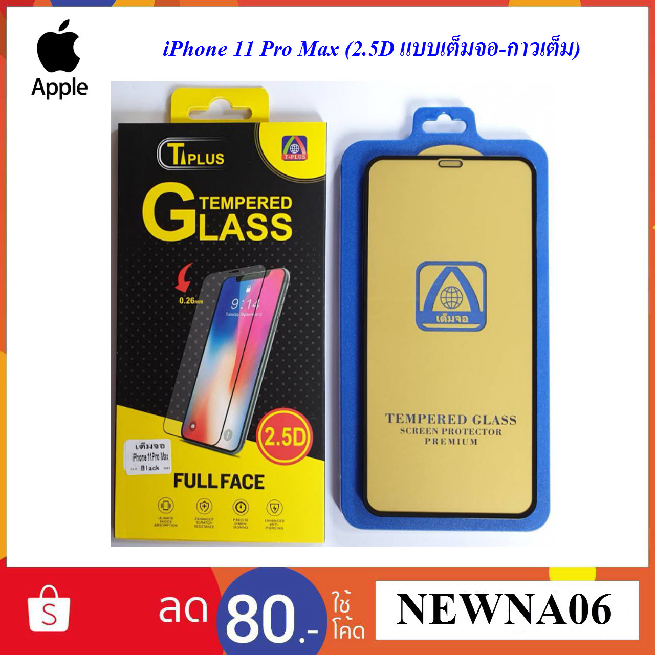 - ฟีล์มกระจก(กันแตก) iPhone 11 Pro Max (2.5D แบบเต็มจอ-กาวเต็ม)