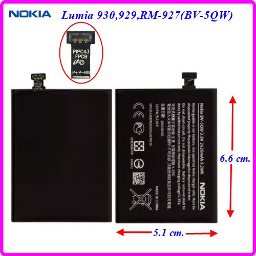 | แบตเตอรี่ Nokia Lumia 930,929,RM-927(BV-5QW) 5.1x6.6 cm.2420 mAh. |