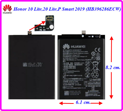 - แบตเตอรี่ Huawei Honor 10 Lite,Honor 20 Lite,P Smart 2019 (HB396286ECW) Or. 6.1x8.2 cm. 3400 mAh.